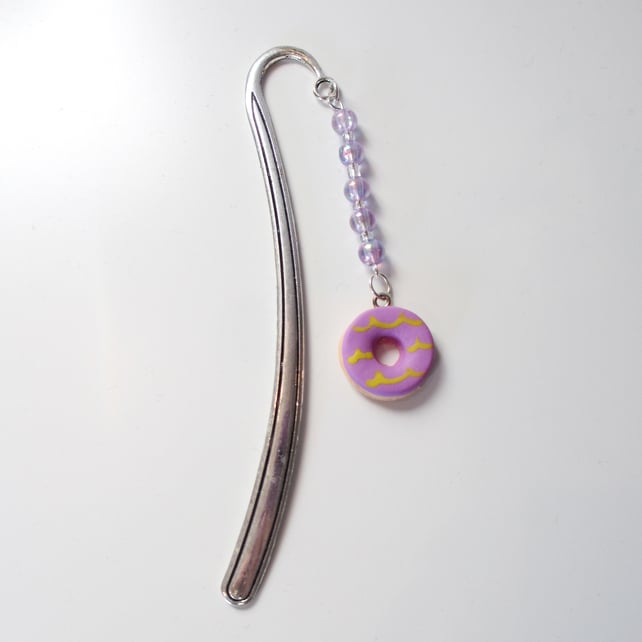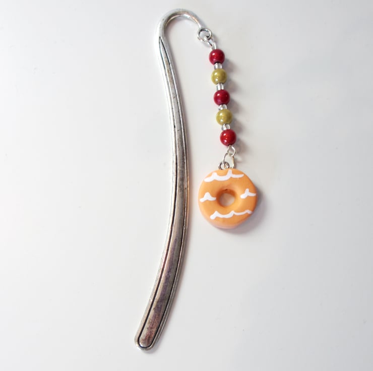 A very cute miniature iced ring charm on a bookmark, complete with coloured beads to give a "dangly" effect, to hang on the outside of your book.