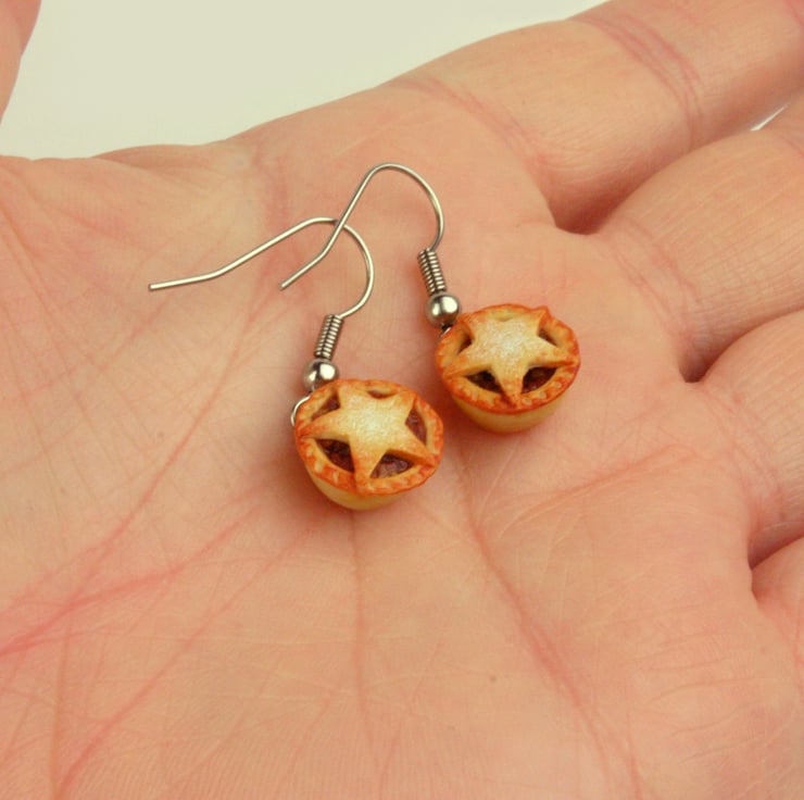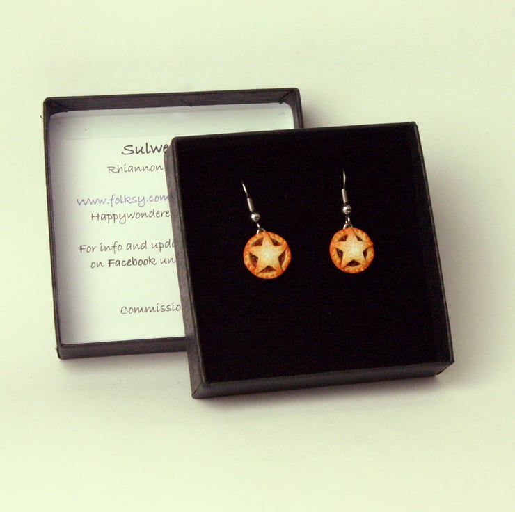 These little mince pies have been handmade using polymer clay and painted for a perfect finish. They are hung on hypo allergenic surgical steel ear wires and come ready to gift in a little black box.