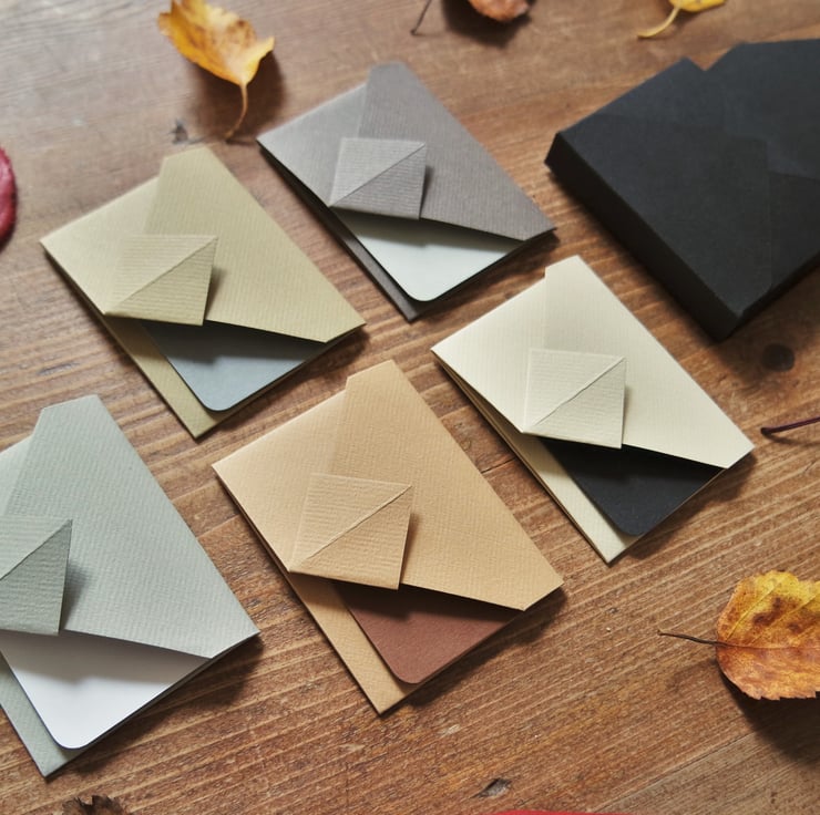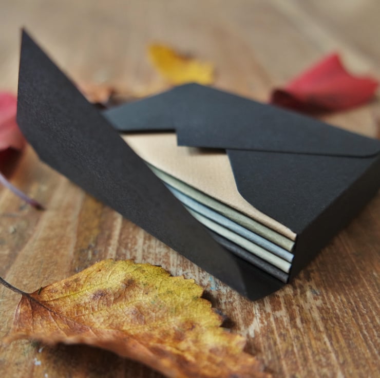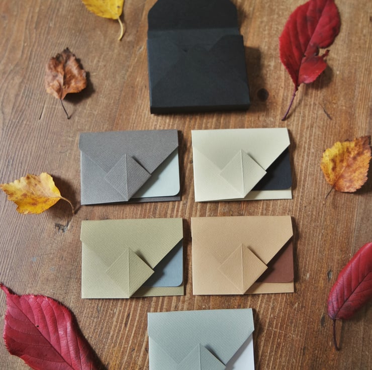 This is a luxury set of 5 mini origami envelopes in a black slipcase.