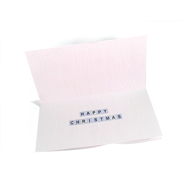 Inside the card there are boxes in corresponding colours to the front with the words "Happy Christmas".