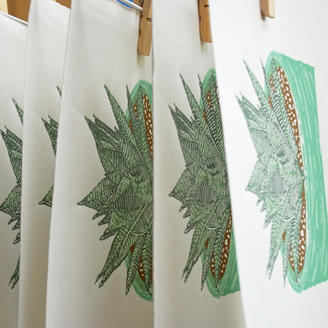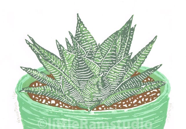 One of these jolly little succulents sits on the kitchen window here, it's pretty markings made it a perfect subject for a linocut print.