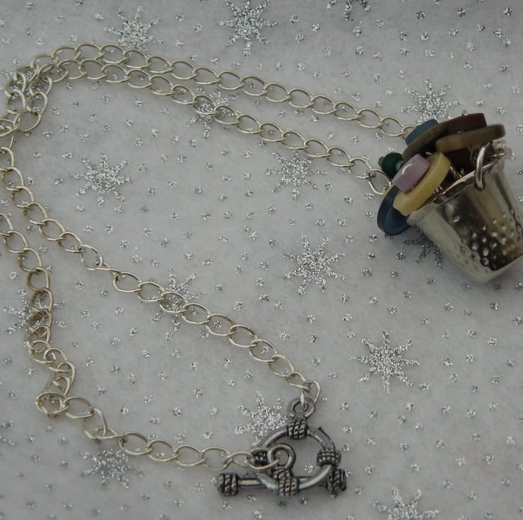 The bucket of flowers stands approx 3cm tall and is presented on a chain approx 40cm in length with a t-bar clasp.