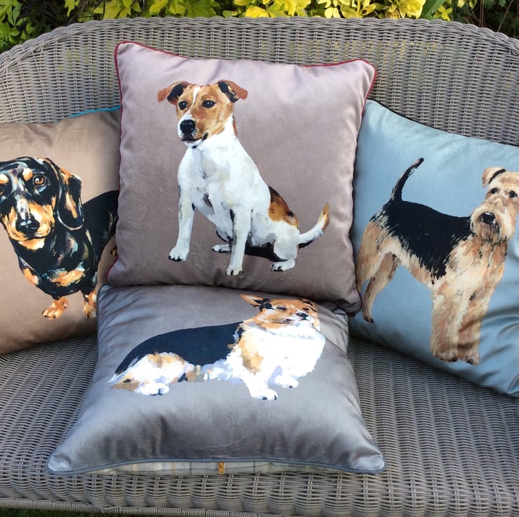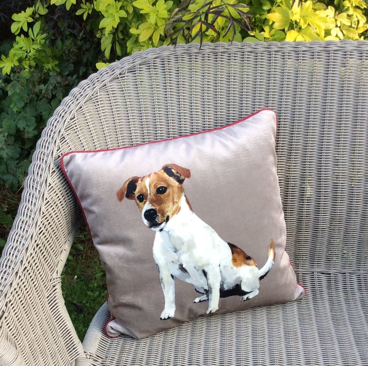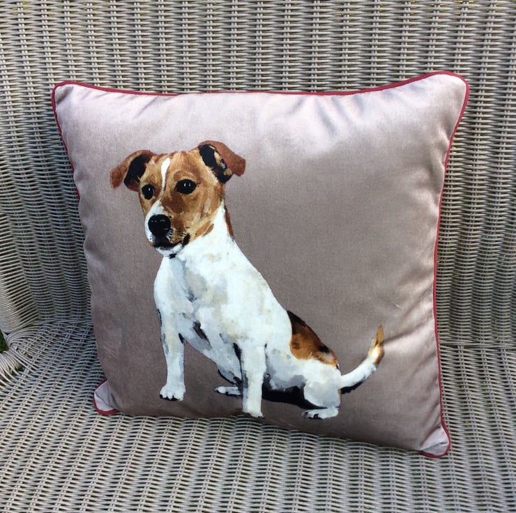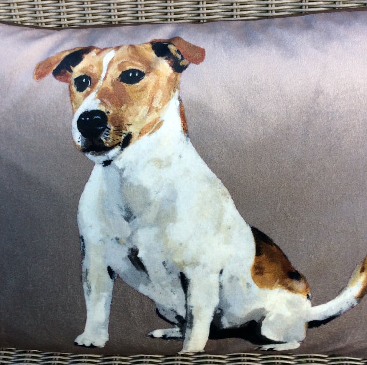This Beautifully soft velvet cushion captures the character of the Jack Russell so well, you can almost feel him watching you across the room!