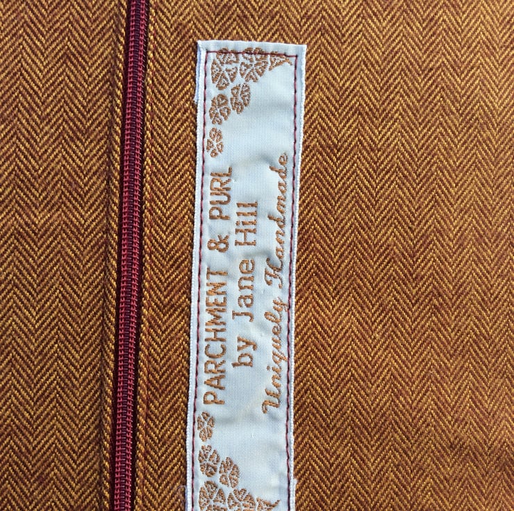 The back of the cushion consists of a co-ordinating terracotta colour tweed fabric, a central zip and makers label.