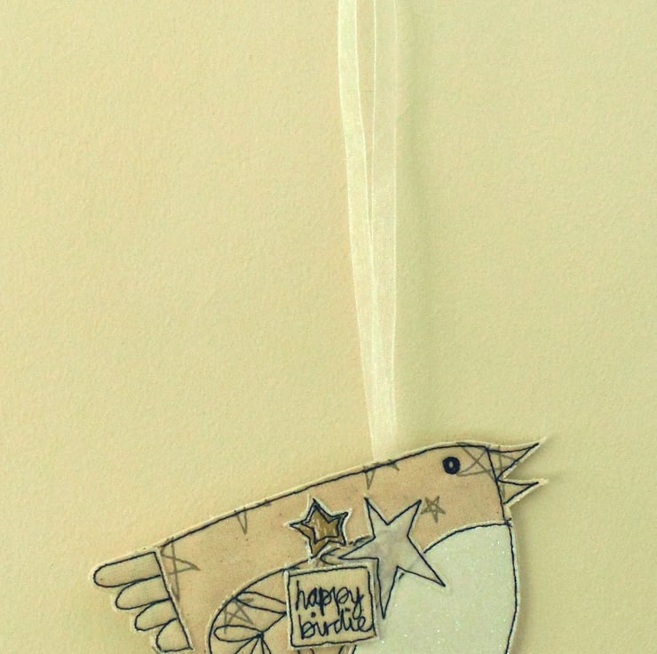 Measuring approximately 10cm by 14cm with a ribbon to hang. Your birdie will be sent in a glassine envelope with a heart label to close.