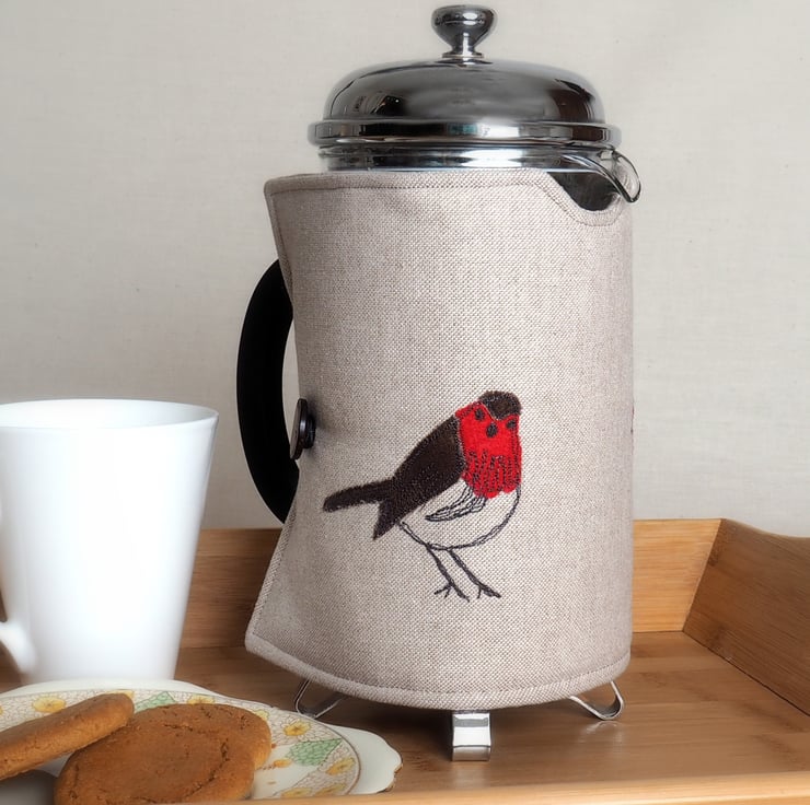 Featuring my own, unique Robin design this pretty wrap style Cafetiere Cosy will be a beautiful addition to any home.