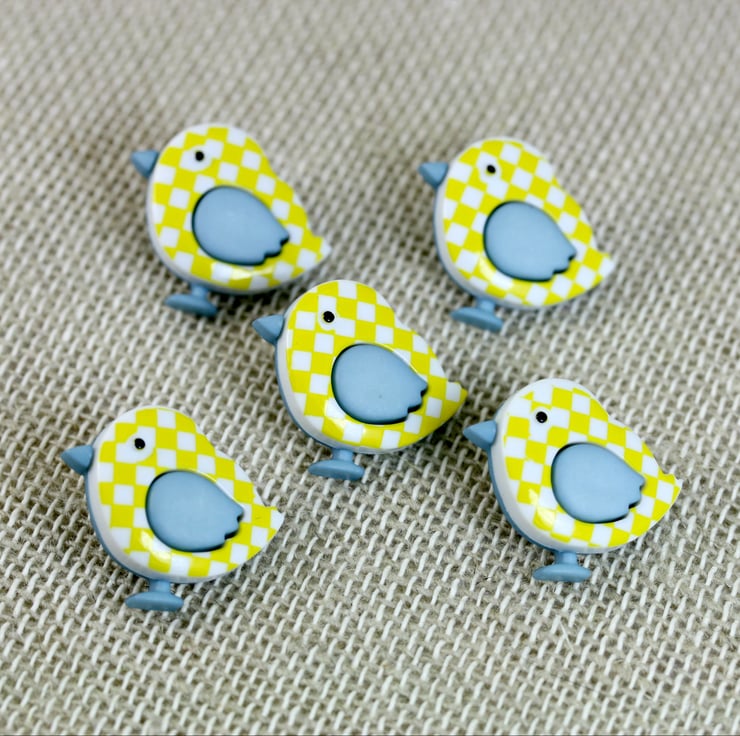 How cute are these! 5 birds in a retro design. These birds are plastic, with a sew through shank. They measure approx 18mm x 22mm.