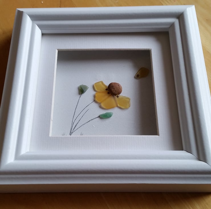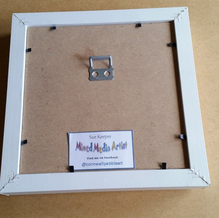This piece is set inside a quality 20cm x 20cm white glazed box frame that can stand alone or hang on the wall.
