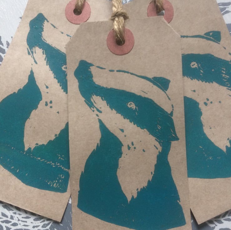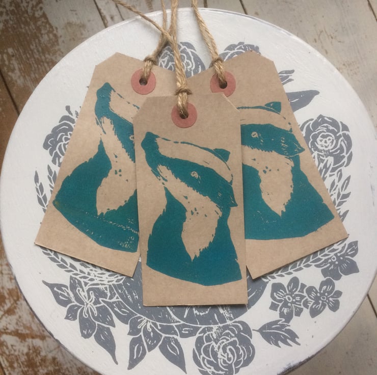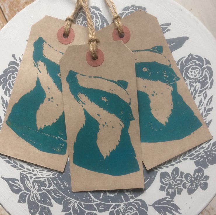 Set of three Badger Gift Tags in a luscious turquoise linseed oil ink.