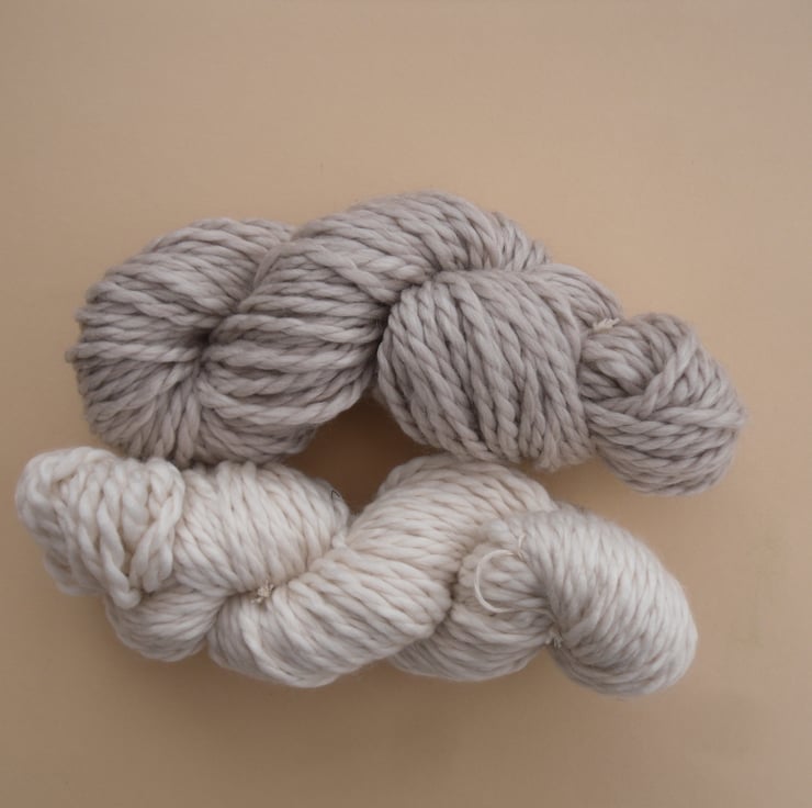1 x 100 gram skeins of Super Chunky Natural Undyed Cashmere yarn (70% Superwash Ultrafine Merino 30% Cashmere) 3 wood buttons