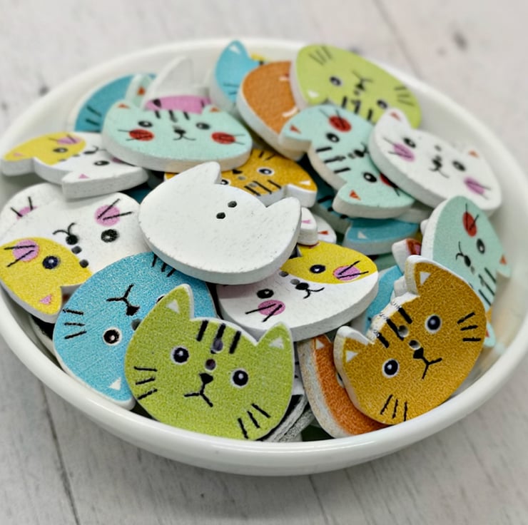 10 Wood Cat Face Shaped Buttons.