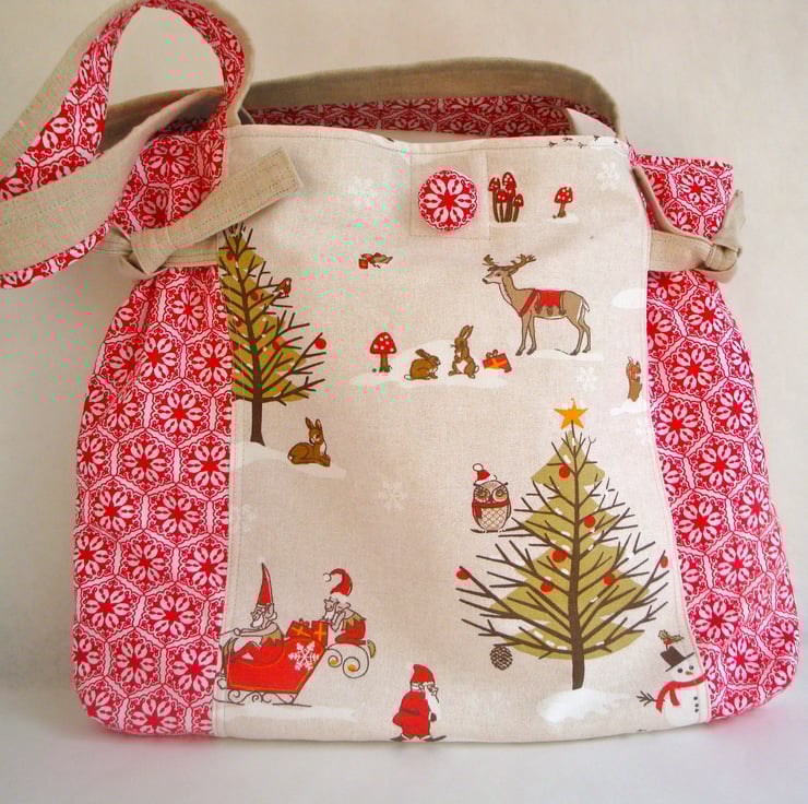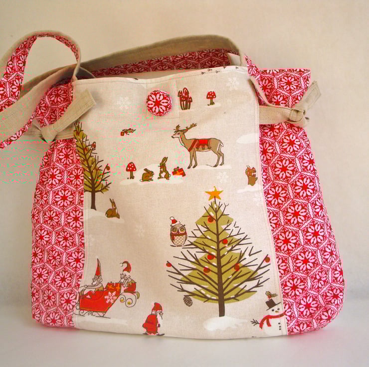 A funky Christmas tote , ideal for a bit of shopping leading up to the festive season - or as a Christmas Day bag , for carrying gifts .