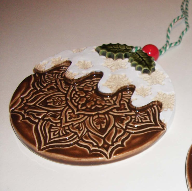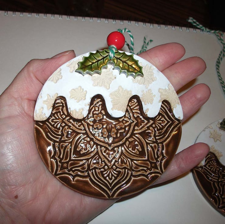 This large Christmasmas puddings are made from white earthenware clay.