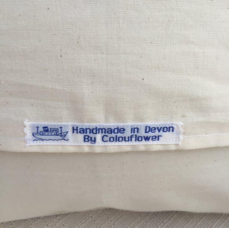 The cover has a plain cream fabric back with envelope opening for easy insertion of infill. All handmade to order in Somerset.