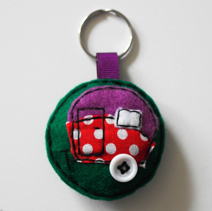 A cute handmade caravan keyring. Ideal gift for a caravan owner, fan or someone who dreams of owning their own caravan. A great secret Santa, stocking filler or a birthday gift. This is a one of a kind item.