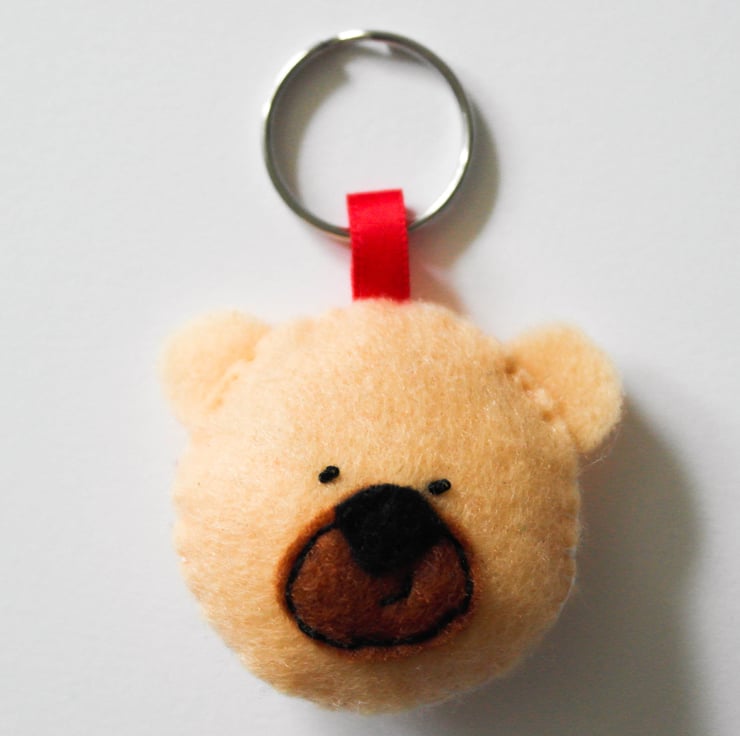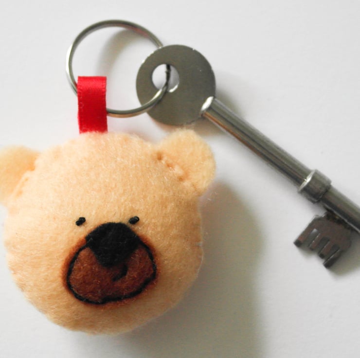 A sweet felt teddy bear keyring that would make a cute gift. Ideal as a birthday gift, new home gift, stocking filler, Mother's day gift or for someones first set of car keys or house keys.