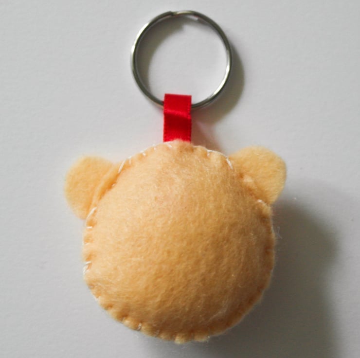 Hand cut, hand sewn using felt and with cotton thread on the top is attached a keyring, using a sewn in piece of red ribbon. The keyring inside is lightly stuffed. Yours may vary slightly from the photo as each one is handmade.