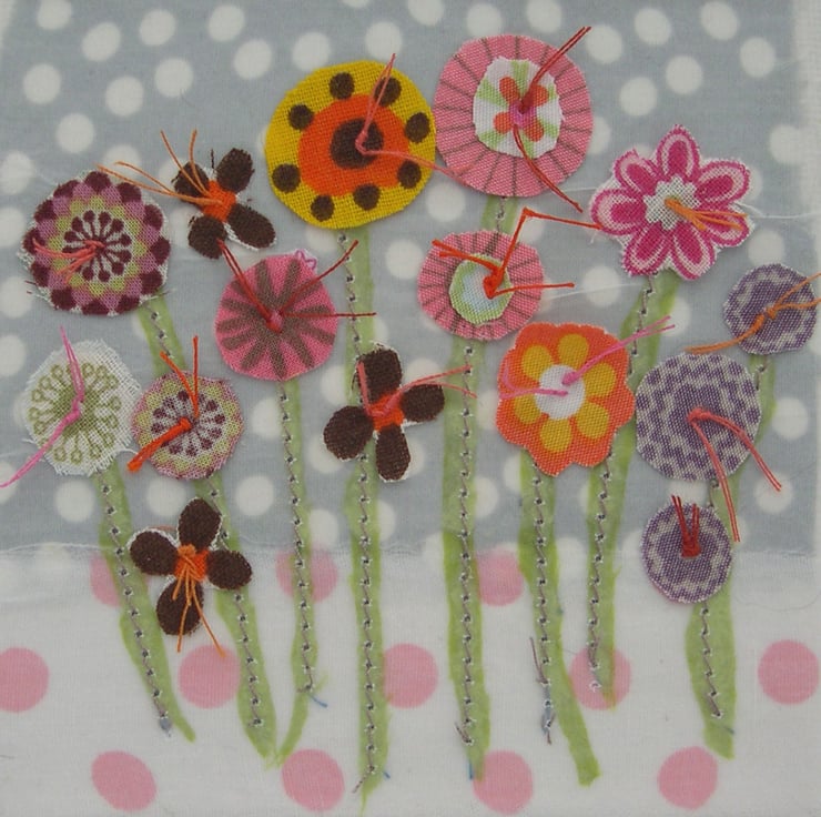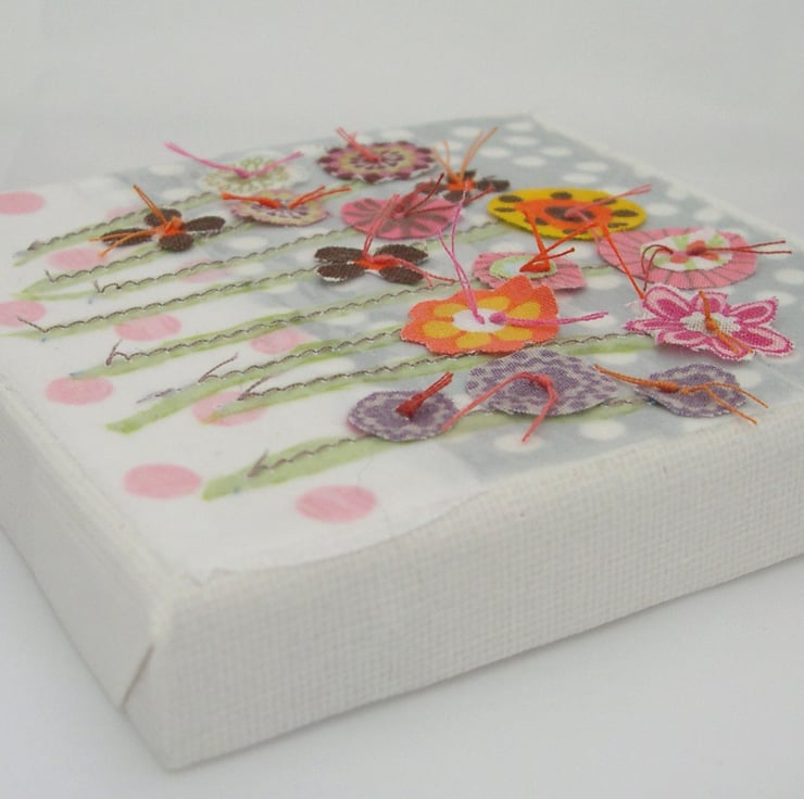 Individually hand crafted with recycled textiles and papers to create a delicate layered effect, embellished with stitch and hand cut flowers.