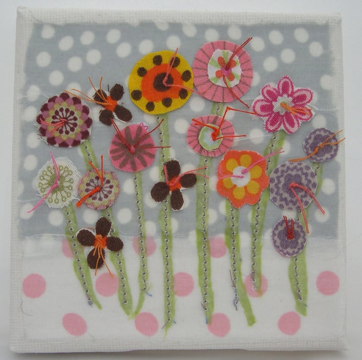 Bring the outdoors inside and create a warm glow in your home with this Autumn Flower Garden textile artwork.