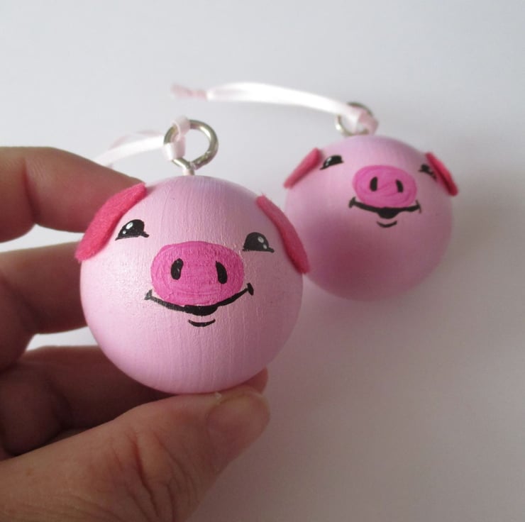 These wee piglets are perfect for the tree of an animal lover. They are pink, with pink ribbon to hang them by. These are adorable as Christmas tree decorations, but could also be hung all year round as general decorations.