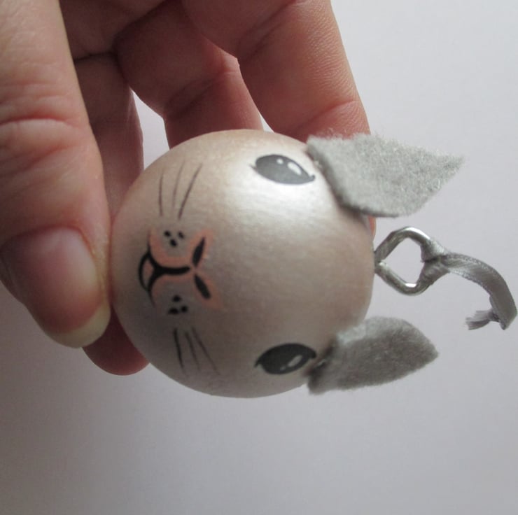 A silver coloured uppy eared bunny rabbit Christmas tree bauble / decoration.