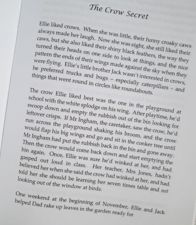 The Crow Secret is an original children's Christmas story, written initially for my own niece and nephew, which I have printed up and bound as an A5 paper booklet. The story itself is sixteen A5 pages long and takes about 12 minutes to read out loud. There is one illustration at the end. Would make a nice stocking filler, alternative Christmas card or addition to a Christmas Eve box.