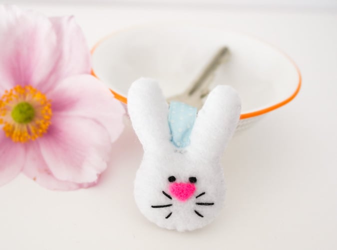 Hand cut, hand sewn using felt and with cotton thread on the top is attached a keyring, using a sewn in piece of pale blue with white dots ribbon. The keyring inside is lightly stuffed. Yours may vary slightly from the photo as each one is handmade.