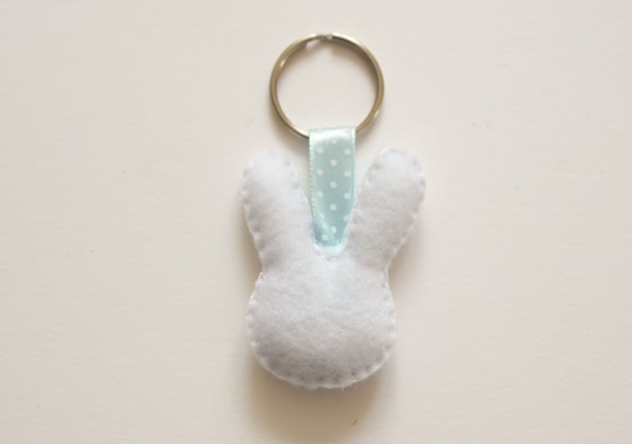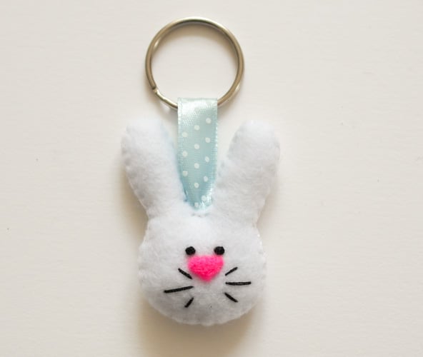 A cute white rabbit keyring. Ideal birthday gift, Christmas present, stocking filler or an Easter gift.