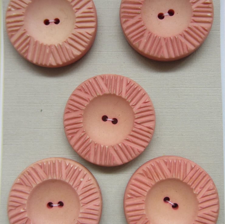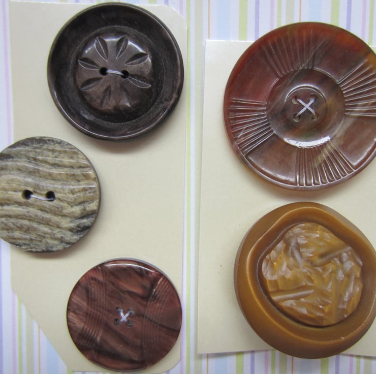Selection of large vintage buttons. In good vintage condition; a couple of tiny nibbles on the large pink buttons and 1 of the 4 light brown buttons has a mark.