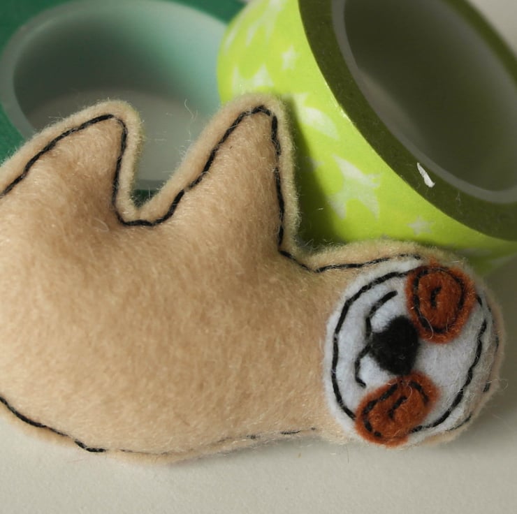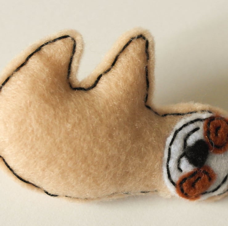 A very cute handmade felt sloth brooch. Ideal as a birthday present, Christmas present, stocking filler or why not get it for a teenager who is always sleeping. Buy it for yourself who doesn't want their own sloth.