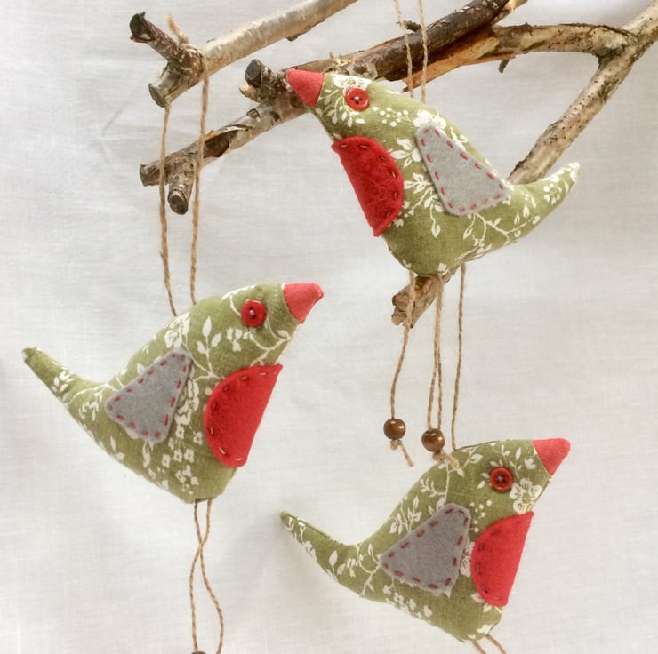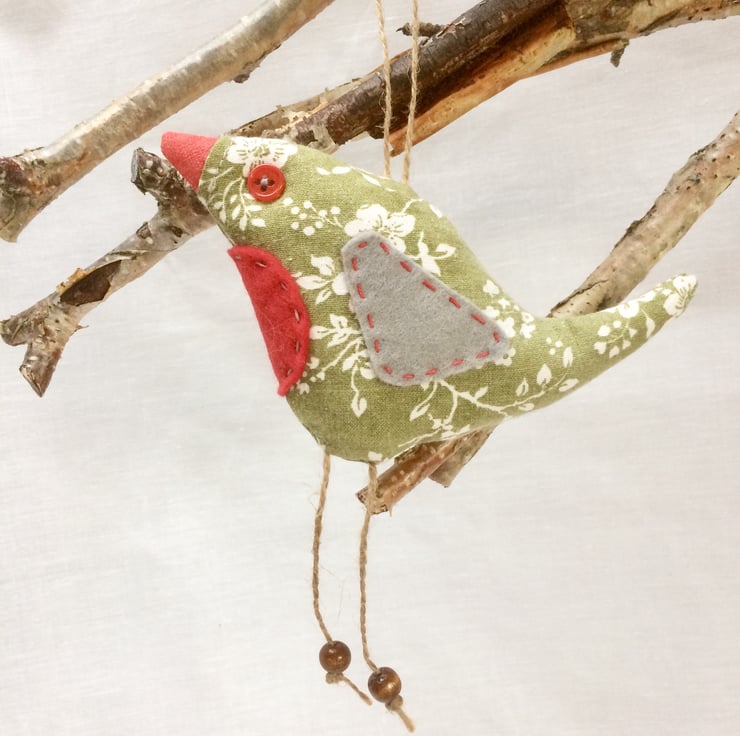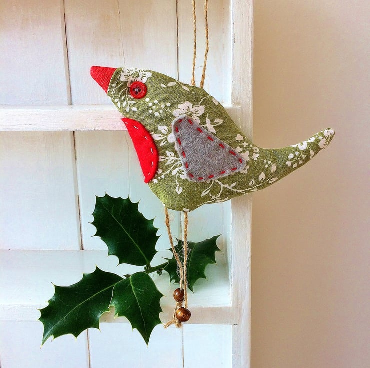 Retro robin made with 80s Laura Ashley vintage fabric , by WittyDawn .