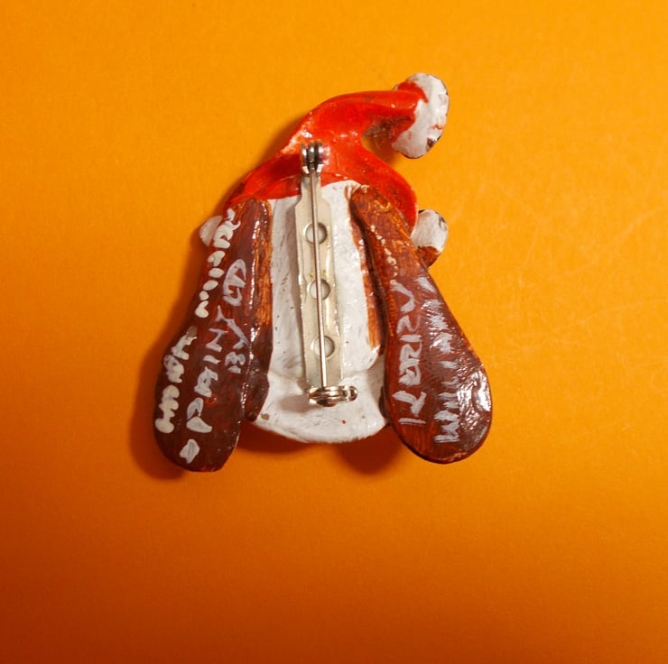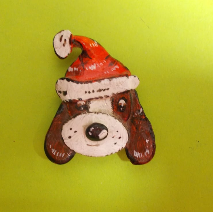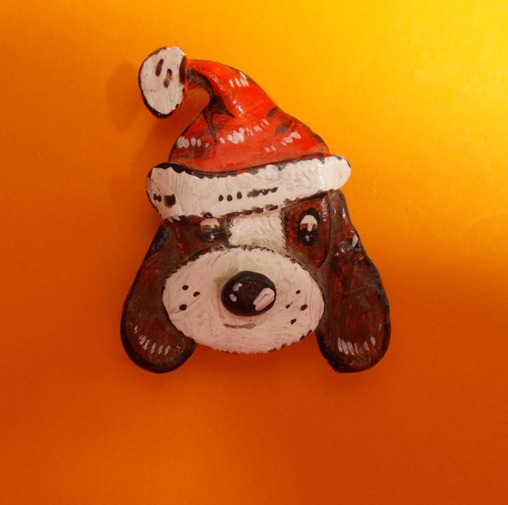 You are looking at a variation of one, of my most popular Designs- The FATHER CHRISTMAS DOG BROOCH- Lapel Flower Pin. A great Festive Pin for the Christmas Period.