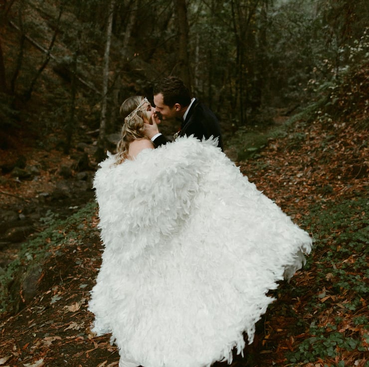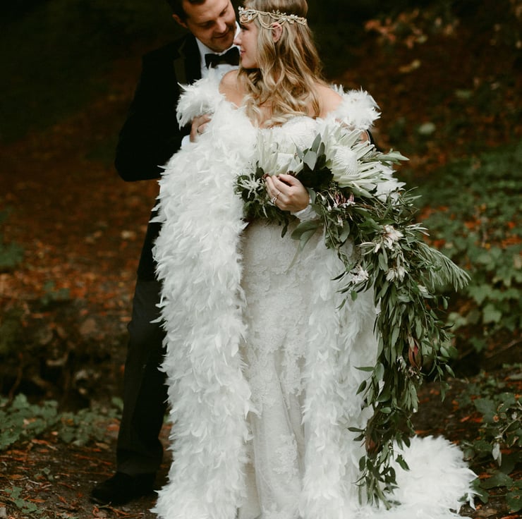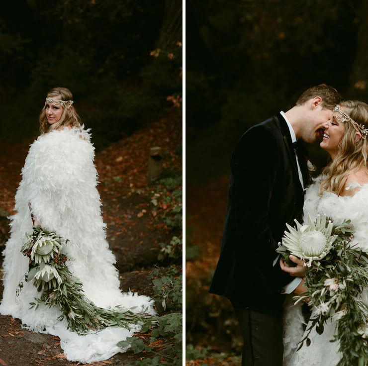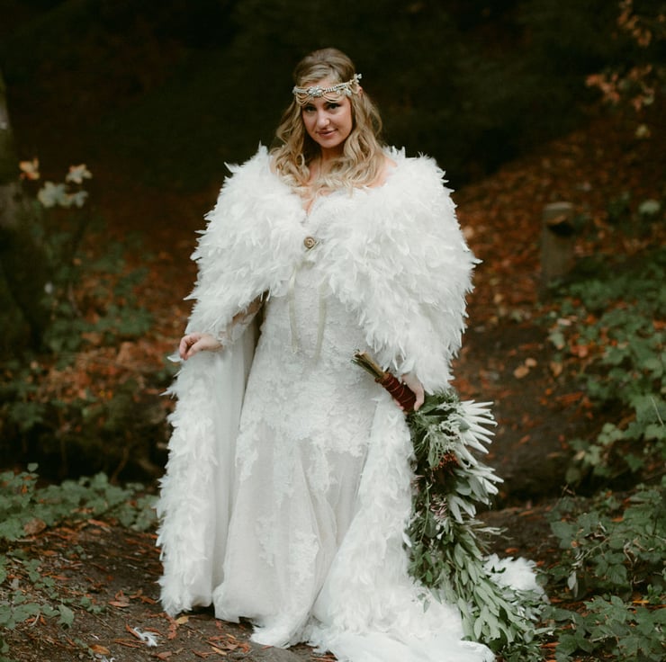 For some added Hollywood glamour here is the full length Winter Wedding cape that I made for my Californian bride. It is stunning and unique, hand made using Ivory Cream Chandelle Feathers. The one shown in this listing is worn by Jess at her Winter Woodland themed wedding.