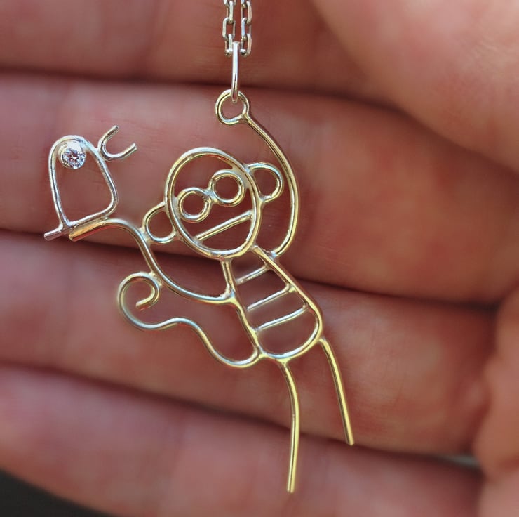 This piece is 3.5cms tall and hangs at an angle (as monkeys do!)
