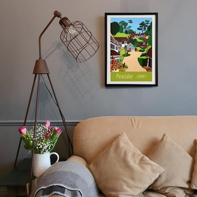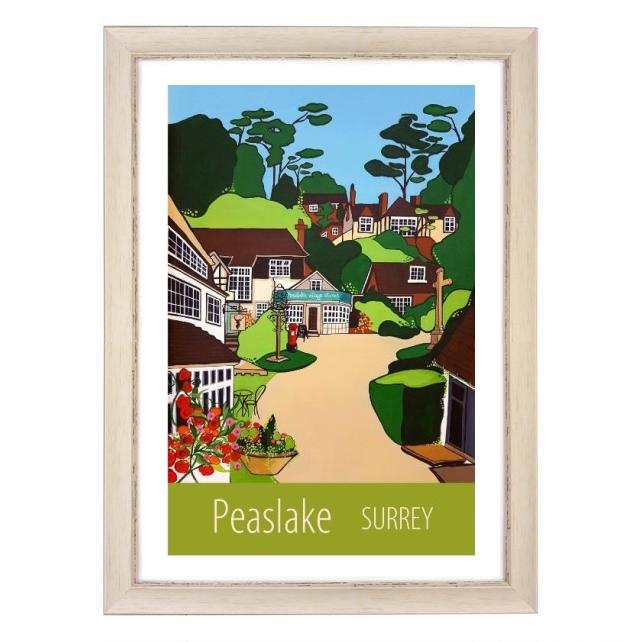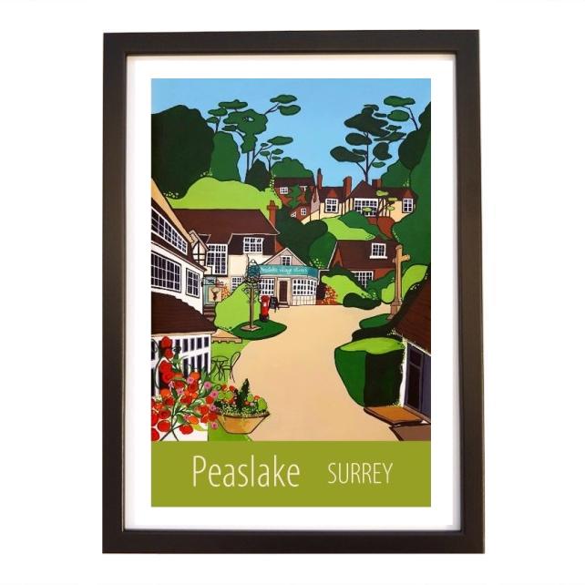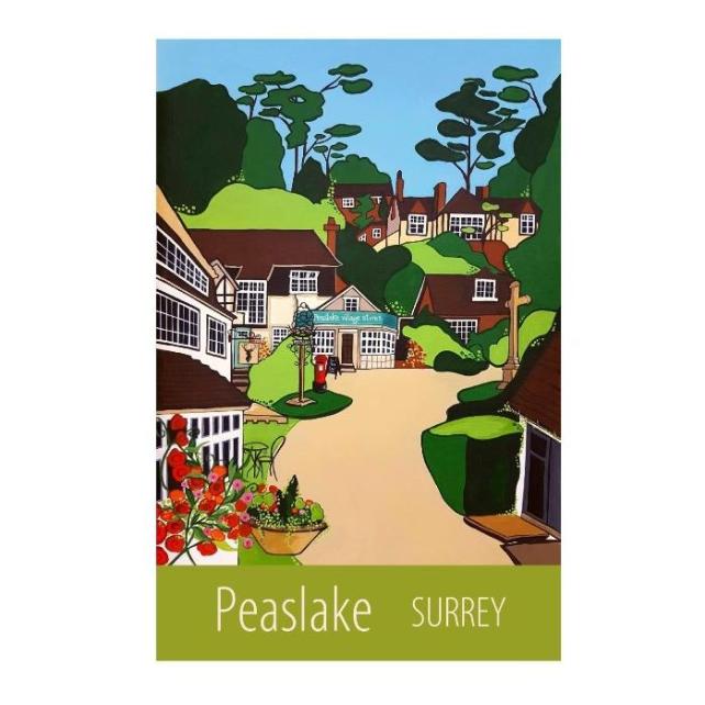 A contemporary travel poster style print of the village of Peaslake, nestled in the Surrey Hills, from my own original acrylic painting.