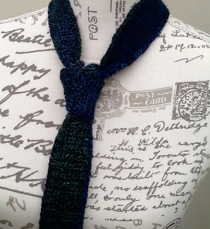 Kingfisher Blue and Green Rainbow Denys Brunton Designer yarn Hand Crocheted Neck Tie for the discerning gent or fashionable lady!