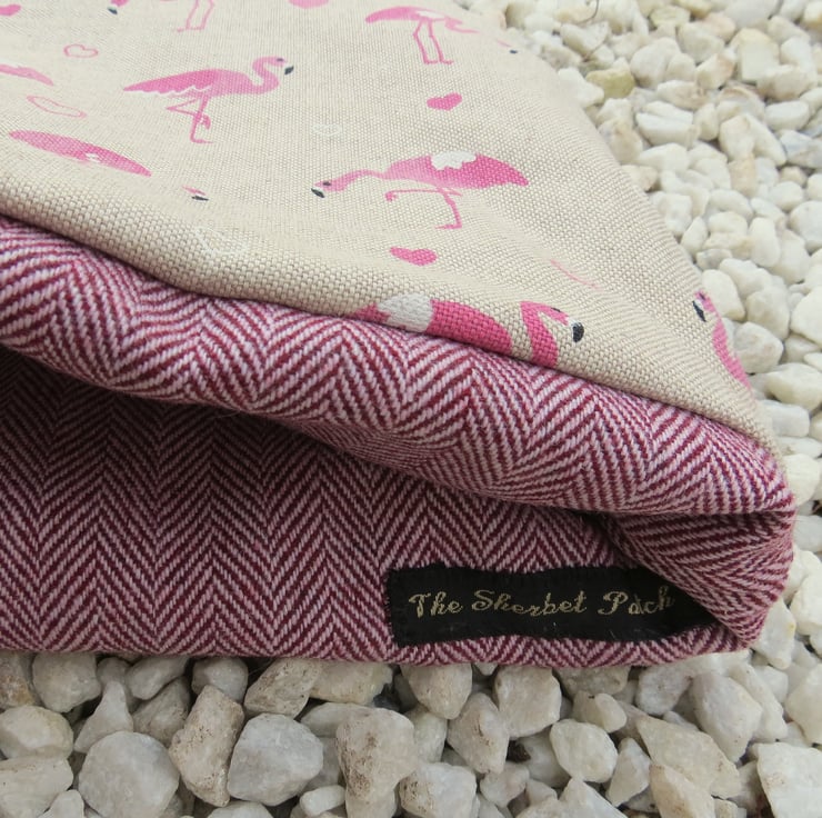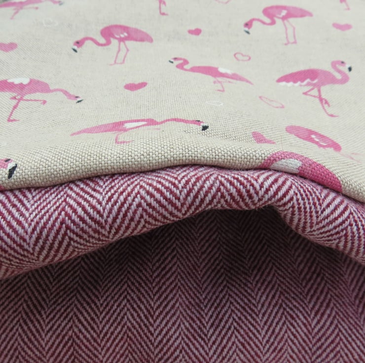 The fabric used is a medium weight cotton, with a pink flamingo design.