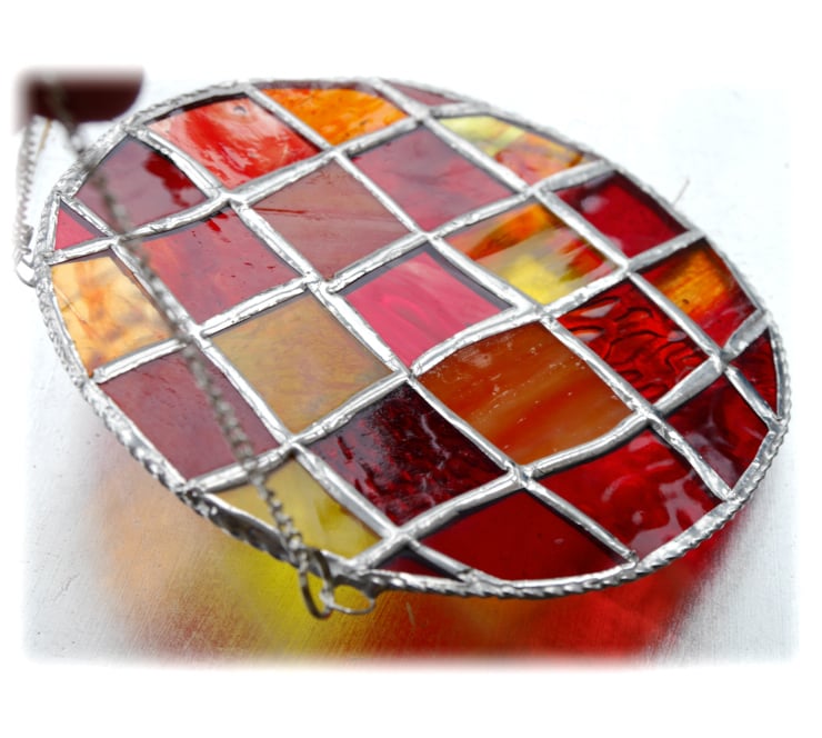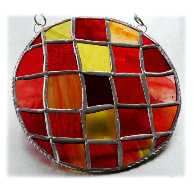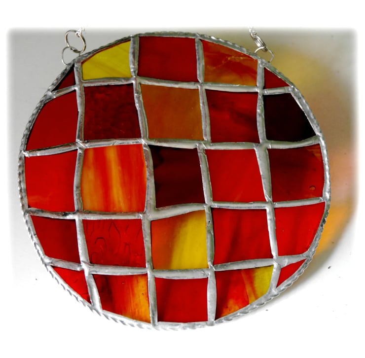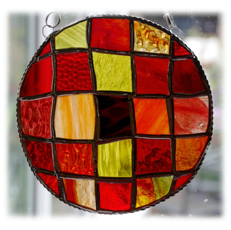 This is a stained glass suncatcher made using the Tiffany copper foil technique.