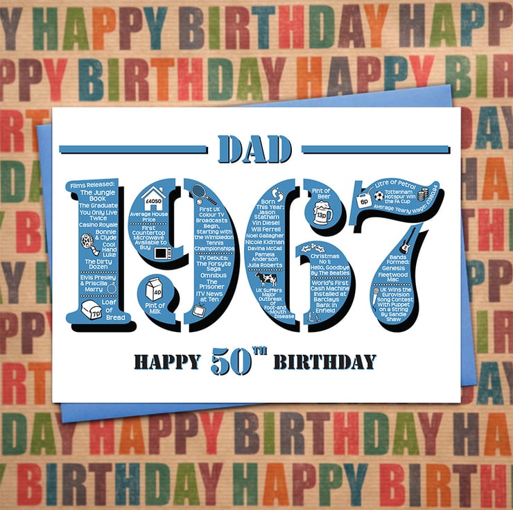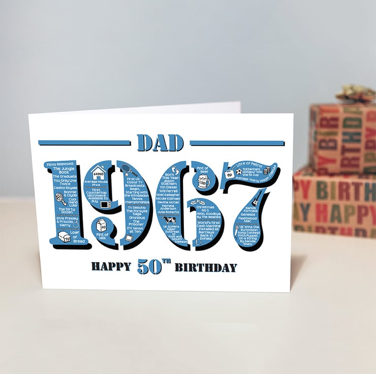 Happy 50th Birthday Dad Greetings Card - Year of Birth - Born in 1967 Facts