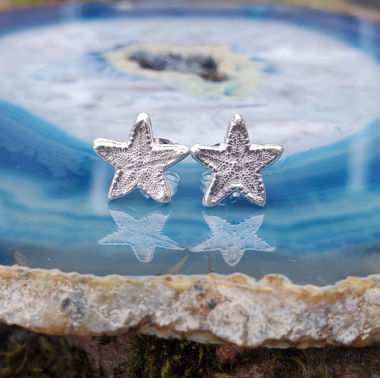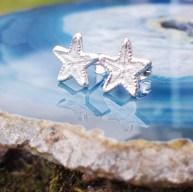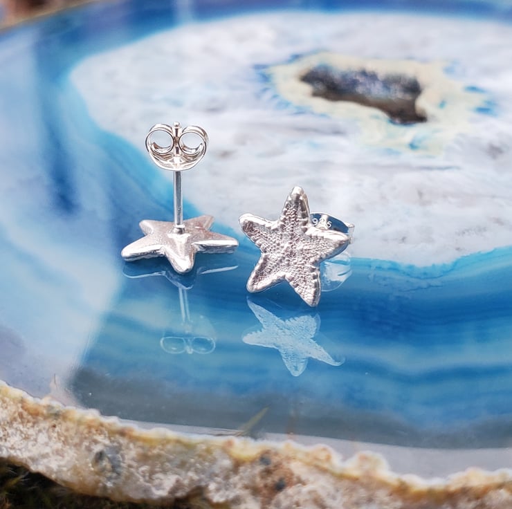 These gorgeous little starfish are solid fine silver with sterling silver posts and scrolls.