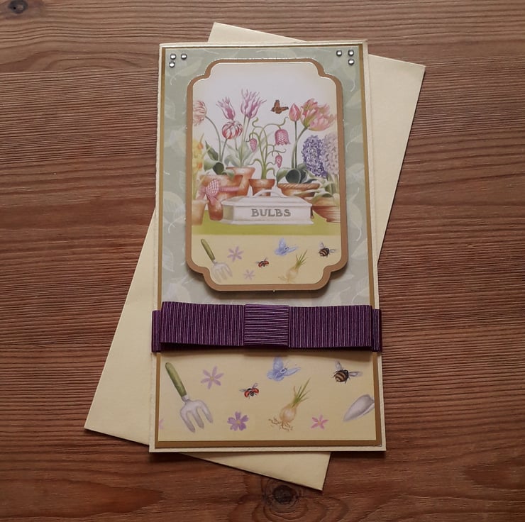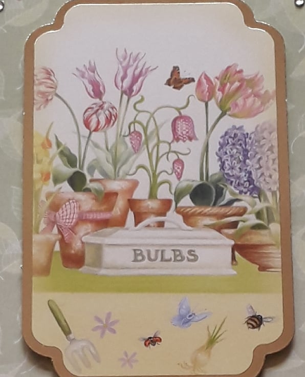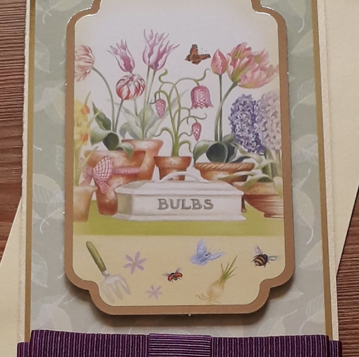 This luxurious card showing a pretty spring scene would be ideal for a garden lover, or any female friend or relation for a variety of occasions.