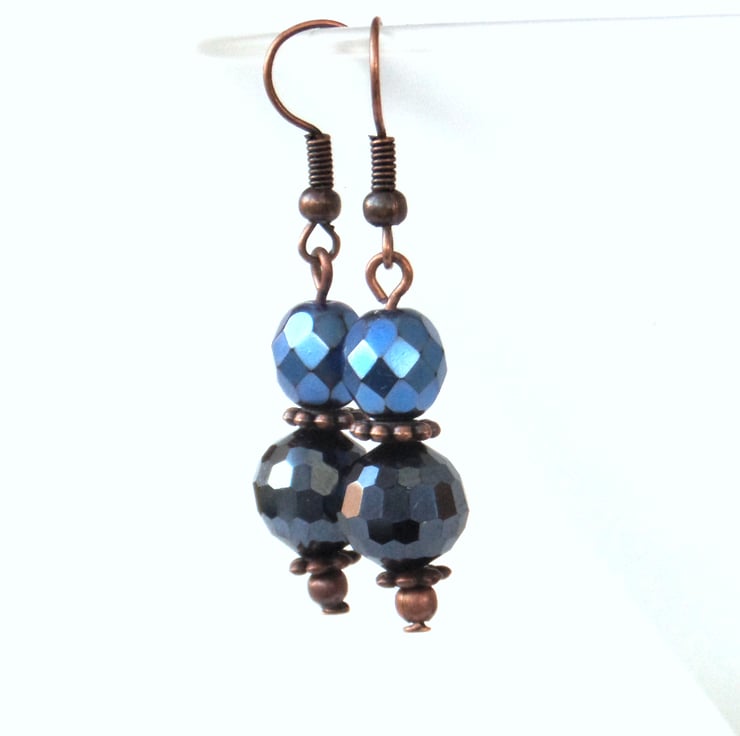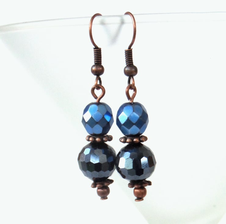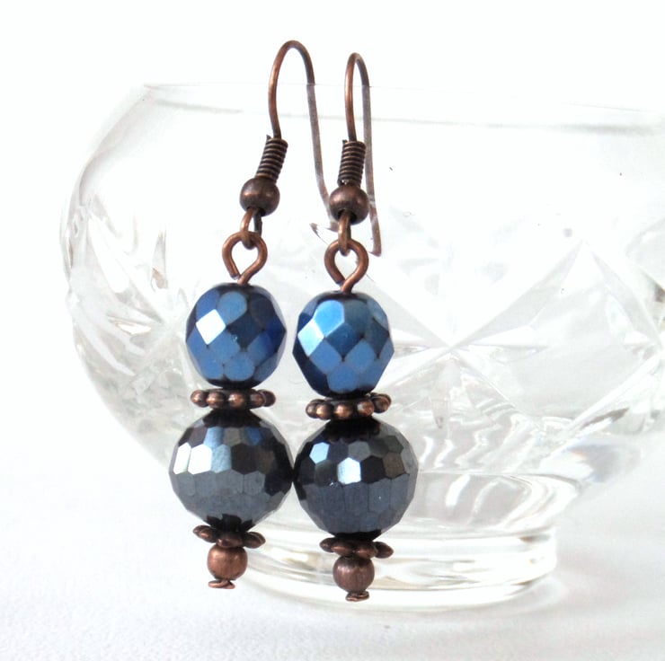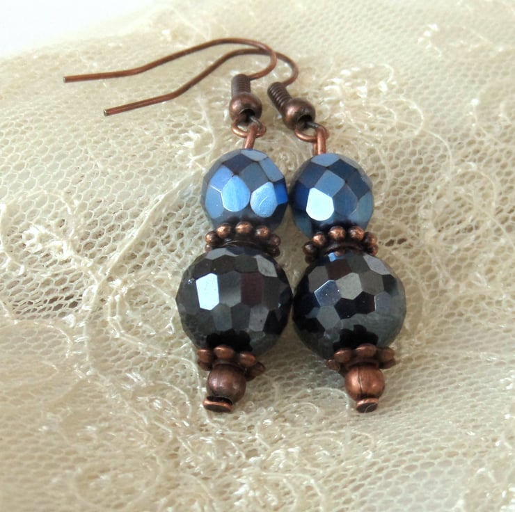 The crystals are faceted, which gives them extra sparkle. The jet crystal is a very dark blue / almost black that contrasts beautifully with the more royal blue of the Preciosa crystal.