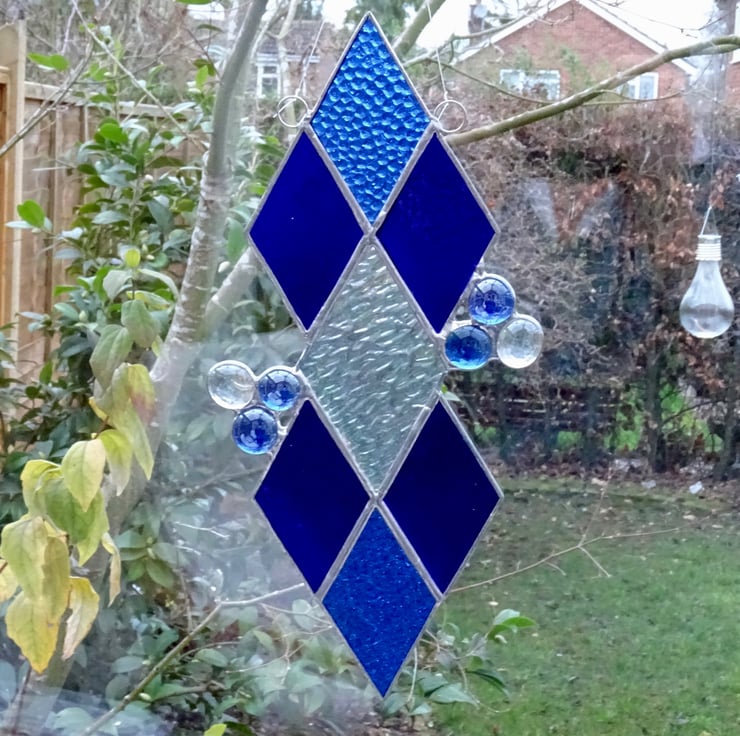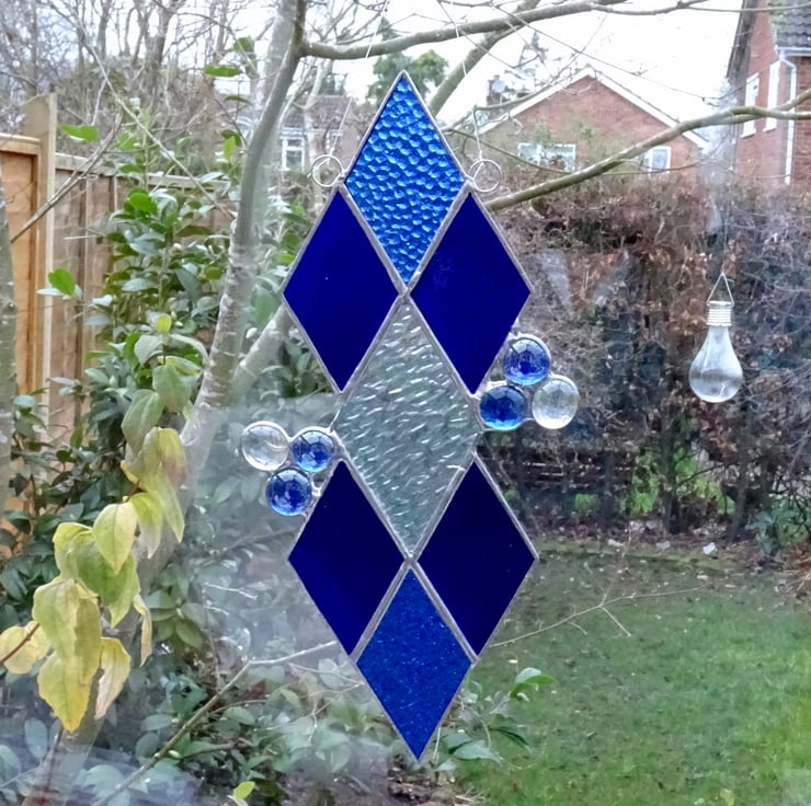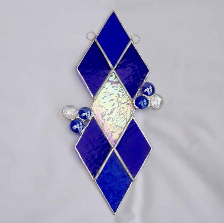 Here is a stained glass sun catcher made out of 7 diamonds of glass.