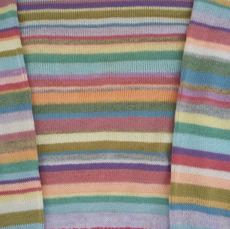 The inspiration for this jumper came from the rainbow baby blankets I make. The idea works very well for clothing too.