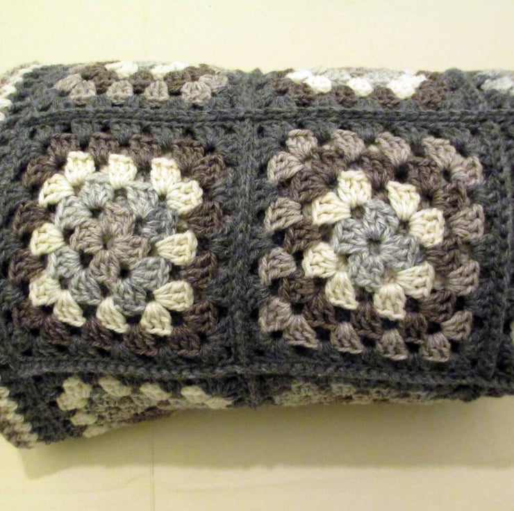 Traditional Granny Square blanket in modern neutral colours makes it perfect for any home old or new!