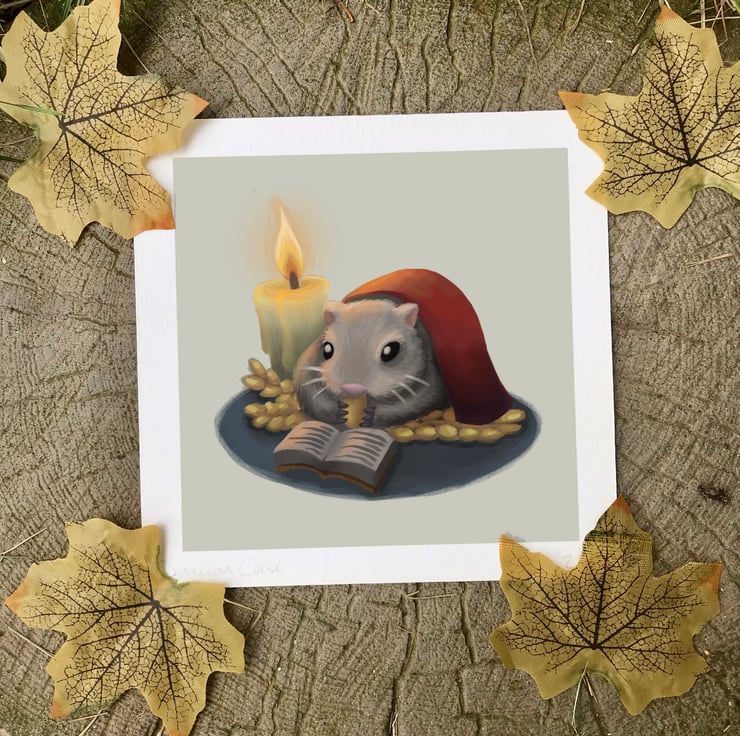 Be one of a select few to own one of these cute, quirky 'Hamster' limited edition signed art prints. Printed on 6" by 6" German etching with a 1" white border. Printed to order so can take up to 14 days to arrive. Print is numbered and signed by DuffleCat Prints artist Damian Case. Print is unframed.