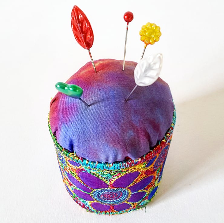 It is packed full of stuffing to poke your pins and needles in, the top part is made from hand dyed Egyptian cotton.