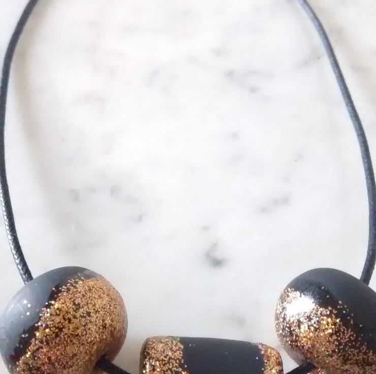 BLACK AND GOLD GLITTER POLYMER CLAY NECKLACE  - FREE UK POSTAGE