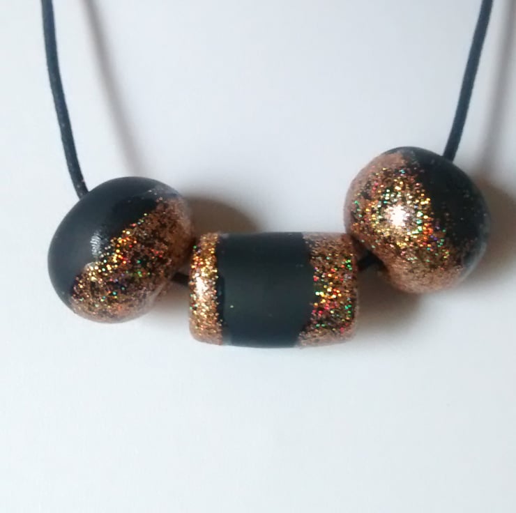 BLACK AND GOLD GLITTER POLYMER CLAY NECKLACE - FREE UK POSTAGE