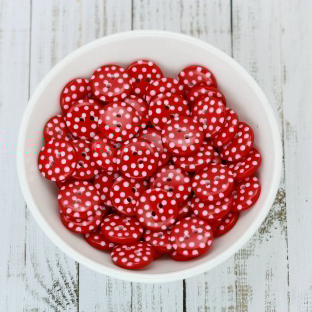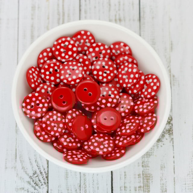 Red Polka Dot Buttons, 2 hole round resin buttons